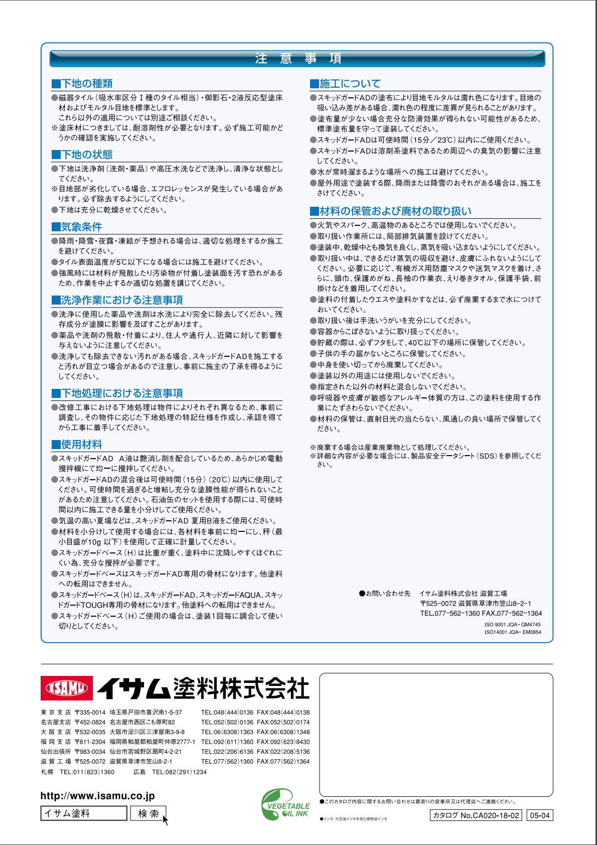 ・速乾性に優れているため常温(23℃)で塗装後、約3時間で歩行可能となります。