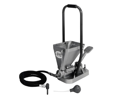屋上防水などの広い範囲の作業に威力を発揮する大容量タイプ。足ぶみ式で楽な姿勢で作業できます。削るより経済的で簡単です。工期も短縮できます。コンプレッサーが不要で、エア注入より、丈夫で長持ちします。注入圧が安定し、しかも圧力が強い!