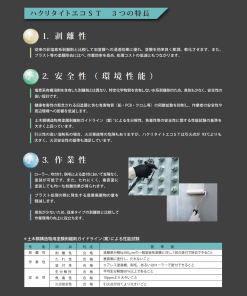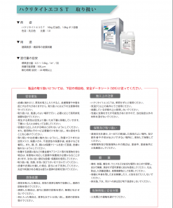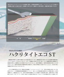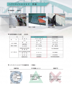 - 引火性の高い溶剤系の場合、火災事故等の危険もありますが、ハクリタイトエコSTは引火点が93℃よりも大きく、火災安全性の基準も満足しています。