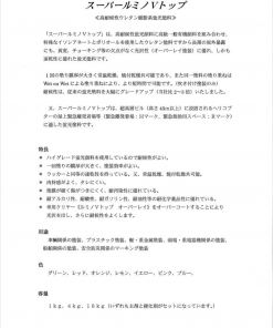 「スーパールミノVトップ」は、高耐候性蛍光顔料に高級一般有機顔料を組み合わせ、特殊なイソシアネートとポリオールを使用したウレタン塗料ですから長期の屋外暴露にも、黄変、チョーキング等の欠点がなく光沢性(オーバーレイ塗装)に優れ、しかも速乾性に優れた蛍光塗料です。1回の塗り膜厚が大きく常温乾燥、焼付乾燥共可能であり、また同一塗料の塗り重ねはWet on Wet による塗り重ねにより、より短時間で可能です。(吹き付け塗装のみ)耐候性は、従来の蛍光塗料を大幅にグレードアップいたしました。