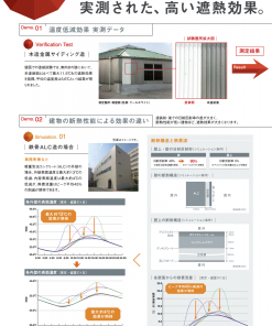 - 高耐候性、低汚染性、防藻、防かび、透湿性によって、長時間にわたり遮熱性能と建物を維持。