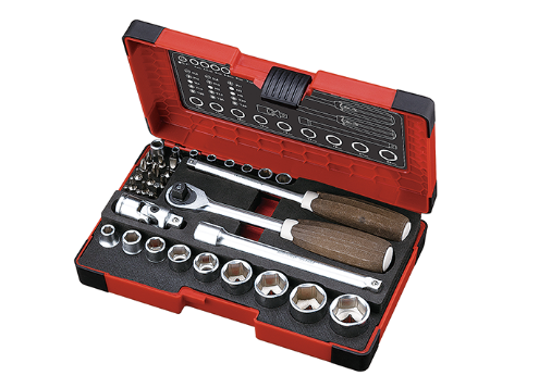 1/4sq&3/8sq・木樹脂製クリップ/ソケットレンチ36点セット/収納ケース付き
