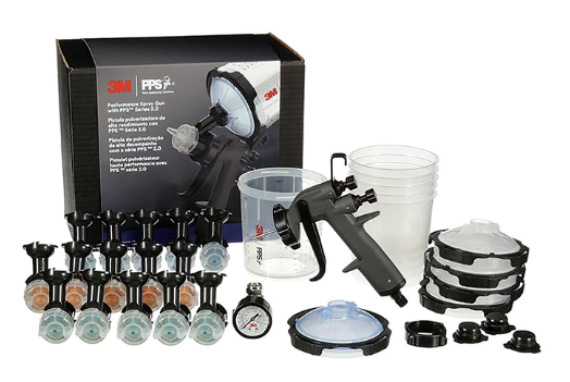 3M™ パフォーマンス スプレーガンを重力式で使用いただけるスターターキット。 ノズルとPPS™ シリーズ2.0が含まれており、すぐに使用していただくことが可能です。重力式HVLPノズルが3種類、5個ずつ含まれています。