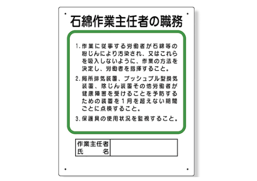 表示内容石綿作業主任者の職務・その他・作業主任者氏名