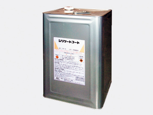 シリケートコートを表面に散布・塗布するとコンクリート表層に浸透し、水分の蒸発とともに細孔を塞ぎます。その後、表面はシリケートコートの硬化物に覆われます。コンクリート内部のシリケートコートは、セメントのカルシウムと反応を続けコンクリートと完全に一体化します。