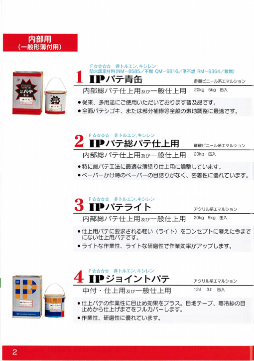 | ・内部総パテ仕上げ用、一般仕上げ用 | ||