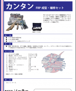 樹脂、硬化剤の他、ガラス繊維、離型剤、洗浄剤などの材料、 ローラー、セラミック用ハサミなどの道具のキット化商品なので 本品が有れば、FPP成型が簡単にできます。