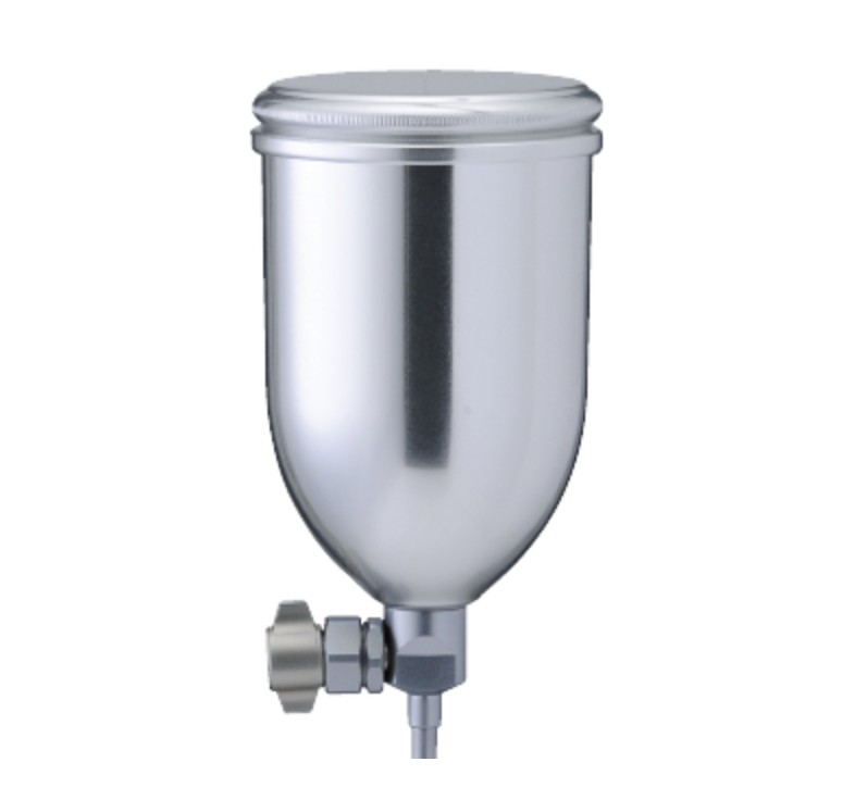 “O-Light Ⅱ”専用の超軽量アルミ製カップ。重力式は、カップ取付けナットを緩めずにカップの角度を自由に変えることができるフリーアングルタイプです。作業中断時にスプレーガンを安定して置くことが可能です。