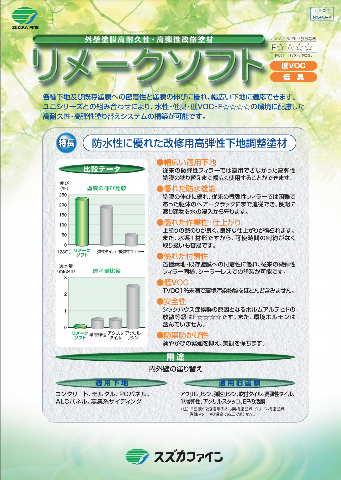 | 適合上塗材 | ラフトン弾性EMエナメル、エコEMアクリル、エコウレタン、エコウレタンつや消し、エコシリコン、エコシリコンつや消し、エコフッソ、水性ウレタンユニ、水性シリコンユニ、水性セラフレックスSi、水性セラフレックスF、弾性ワイドウレタンα、弾性ワイドシリコン、ビーズウォールSi、ビーズウォールBIO※強溶剤系上塗材は使用できません。 |