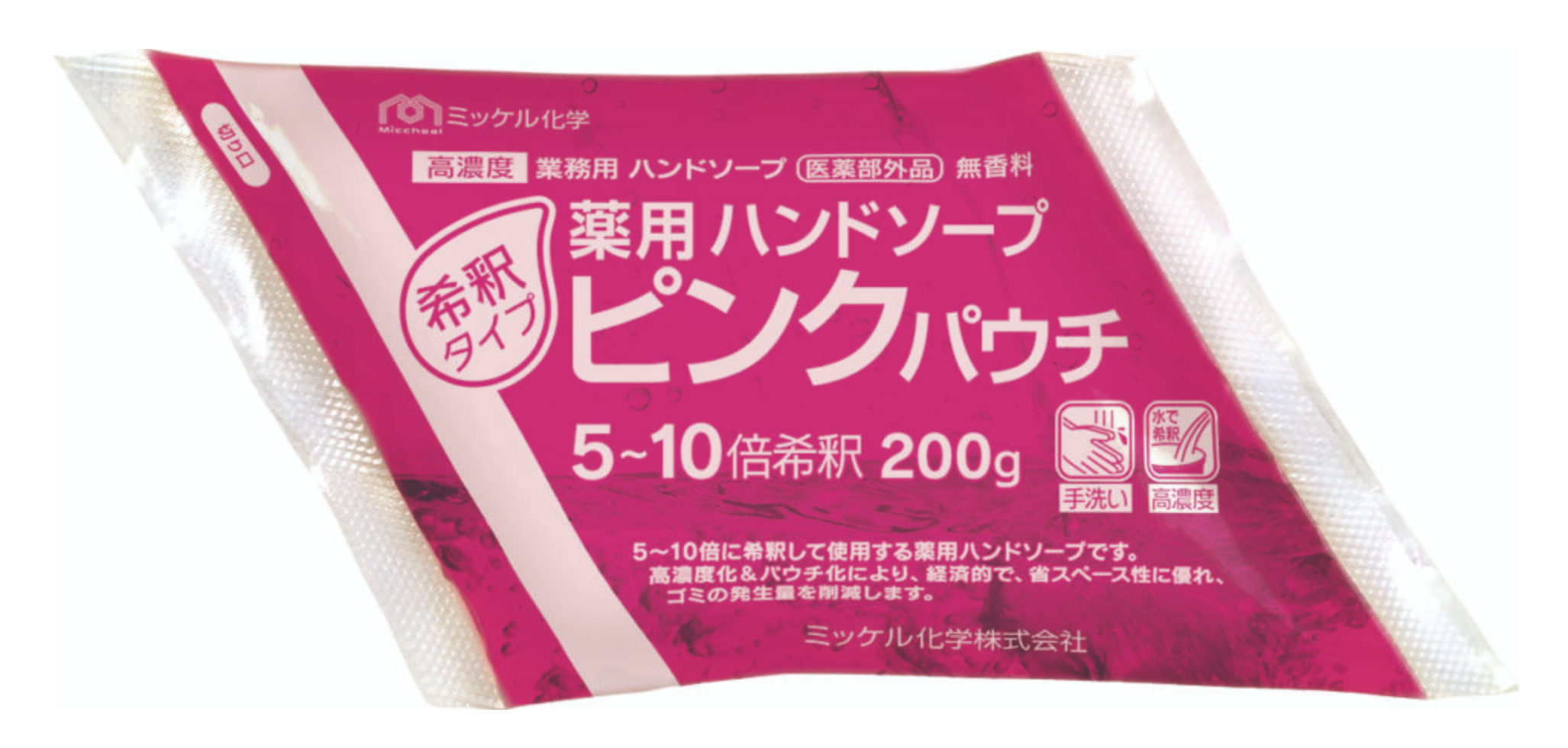 高濃度化とパウチにより実現したコンパクトサイズ。持ち運びやすく保管も省スペース。200g一袋で最大2Lの石鹸液がつくれます。